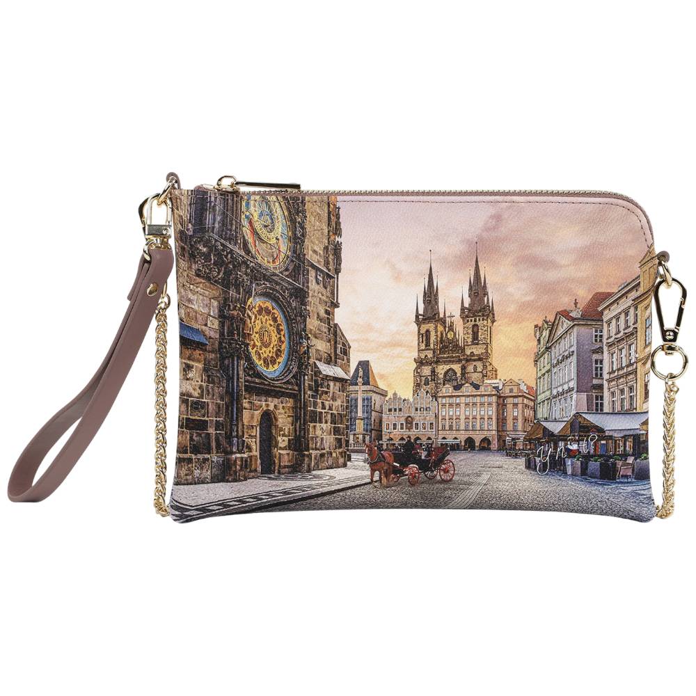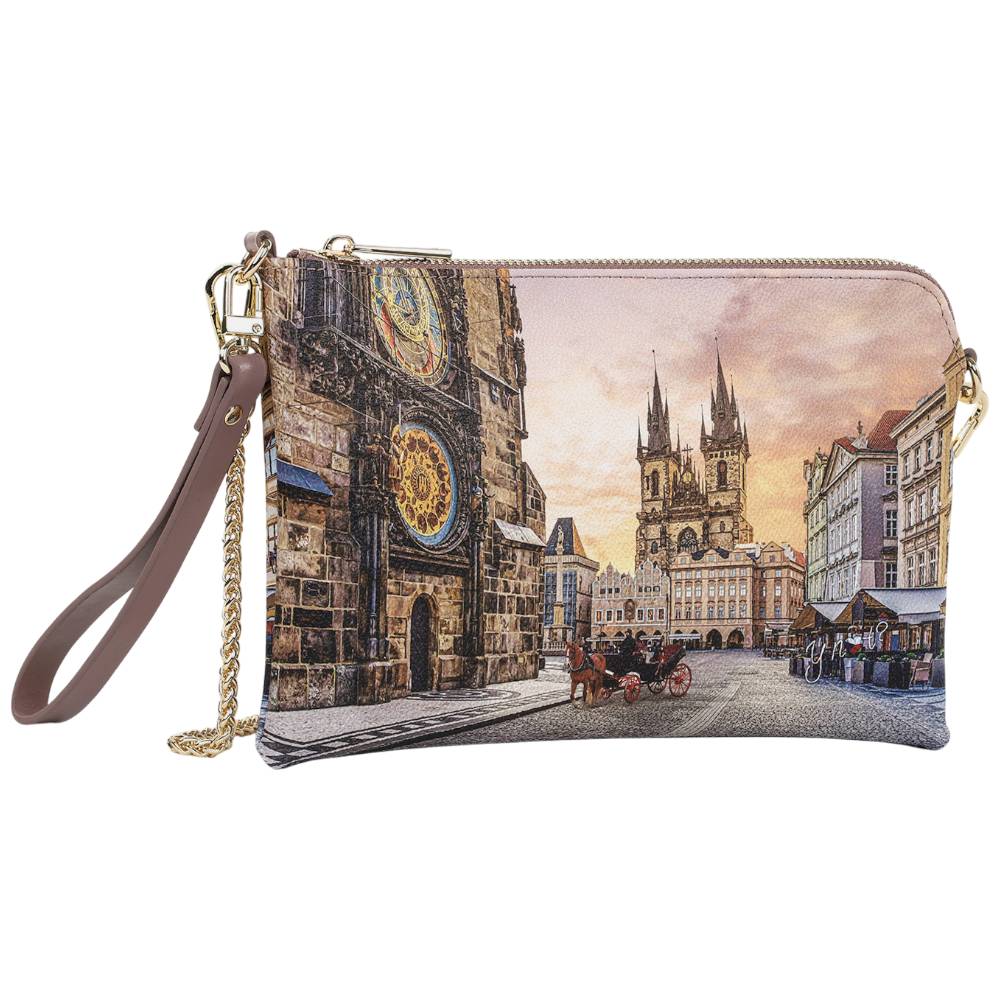 YNot clutch tracolla piatta stampa ASTRO CLOCK linea Yesbag art. YES384F6